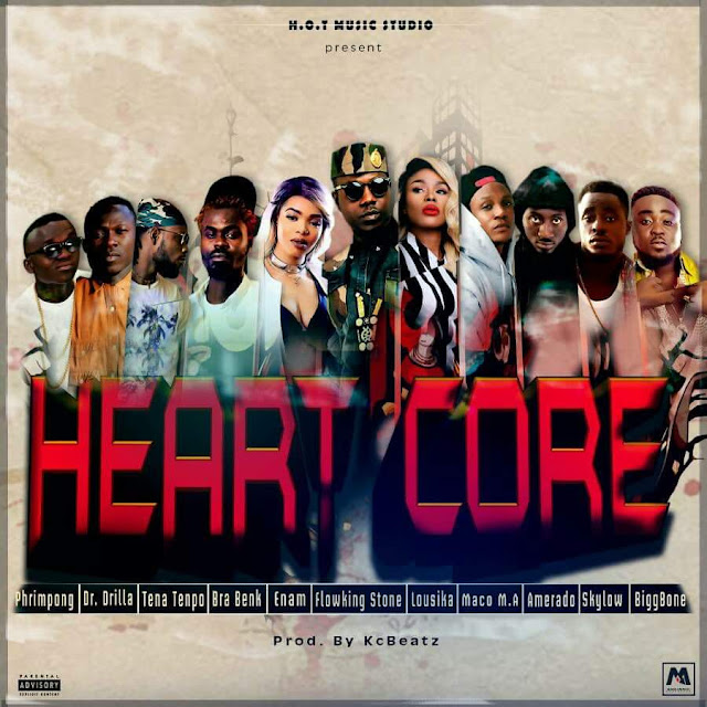Browsing through social media today, I chanced on an artwork posted by beat maker KC to expect soon a collaboration titled “Heart Core” featuring Flowking Stone, Lousika, Phrimpong, Dr Drilla, Bra Benk, Tena Tempo, Enam, Maco MA, Amerado, Sky Low and Biggbone.